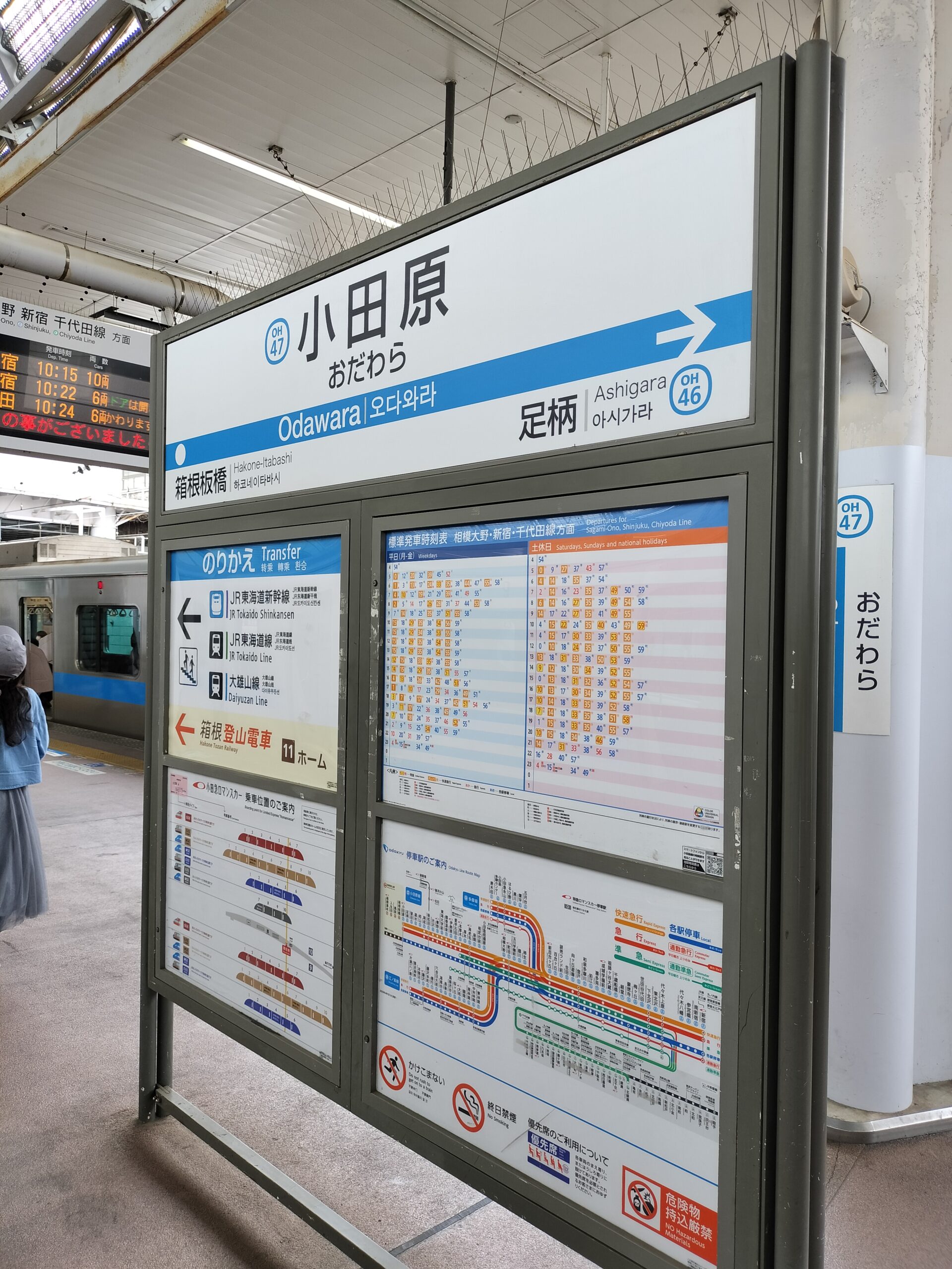 ホームの階段を登って2階に上がります。もし、箱根方面に行かれる方は階段を上がらずにそのままホームの後ろの方(新宿方面ではない方)に進んでください!
