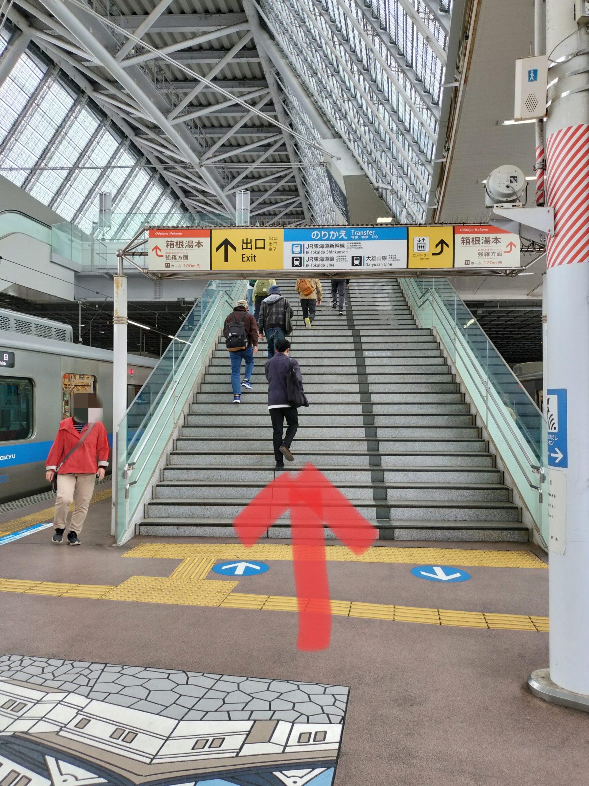 Go up the stairs and go up. But if you’re going to Hakone, please walk straight on the platform without going up the stairs😊